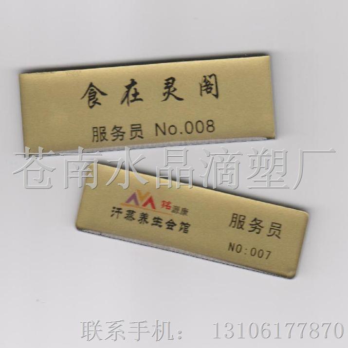 产品是一种采用铝牌材料,制作成胸卡,可以挂在胸前的精美产品。大量使用于一般的学校企业挂在胸前以标示名称或职位