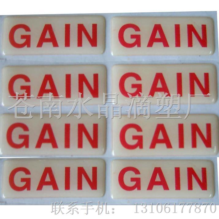滴胶的特性:具有耐水、耐化学腐蚀、晶莹剔透之特点。水晶滴塑固化后高度透明表面光泽优秀,电气性能佳,有弹性,轻度划擦表面即可恢复原状。防水、防潮、耐化学腐蚀,具有优良的颜色稳定性,合理的配方使之耐紫外线优秀、不黄变。可采用多种材料加工,如不干胶、PVC、金属铜、铝等。使用方便,美观大方,滴塑可依客户需要调配出各种软硬度之产品,增加产品的立体感与质感,使标签及产品显出水晶效果和立体效果,提升了产品的附加价值。