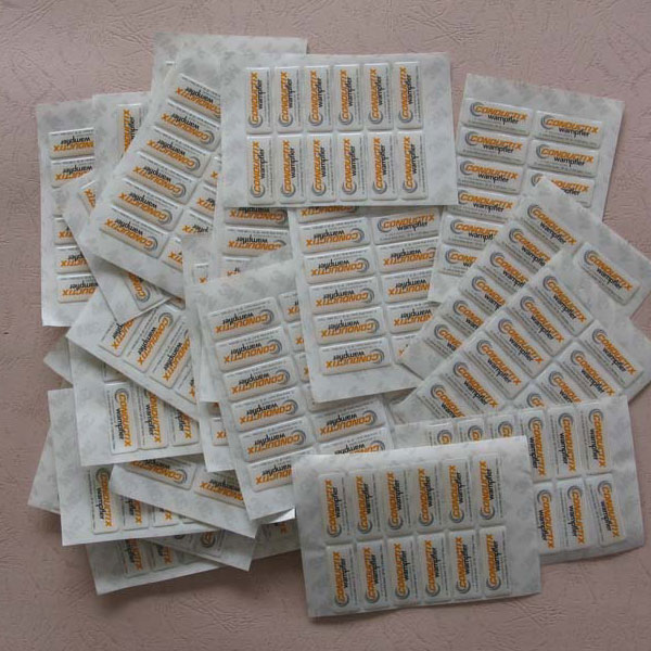 的特性:具有耐水、耐化学腐蚀、晶莹剔透之特点。水晶滴塑固化后高度透明表面光泽优秀,电气性能佳,有弹性,轻度划擦表面即可恢复原状。防水、防潮、耐化学腐蚀,具有优良的颜色稳定性,合理的配方使之耐紫外线优秀、不黄变。可采用多种材料加工,如不干胶、PVC、金属铜、铝等。使用方便,美观大方,滴塑可依客户需要调配出各种软硬度之产品,增加产品的立体感与质感,使标签及产品显出水晶效果和立体效果,提升了产品的附加价值。